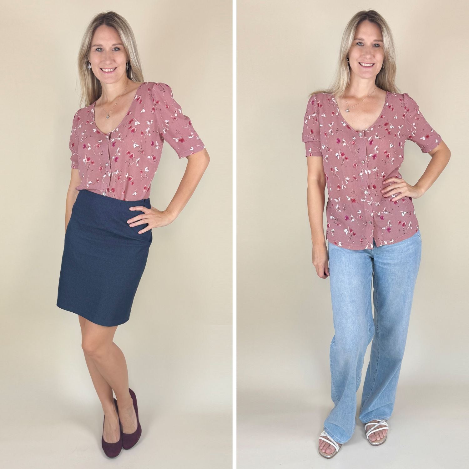 Du kannst zwischen zwei Ärmelvarianten wählen: Ein klassischer kurzer Ärmel für einen klaren Look – oder eine Variante mit hoher, geraffter Armkugel, wenn es etwas verspielter oder romantischer sein darf. So kannst du den Stil der Bluse ganz individuell bestimmen.