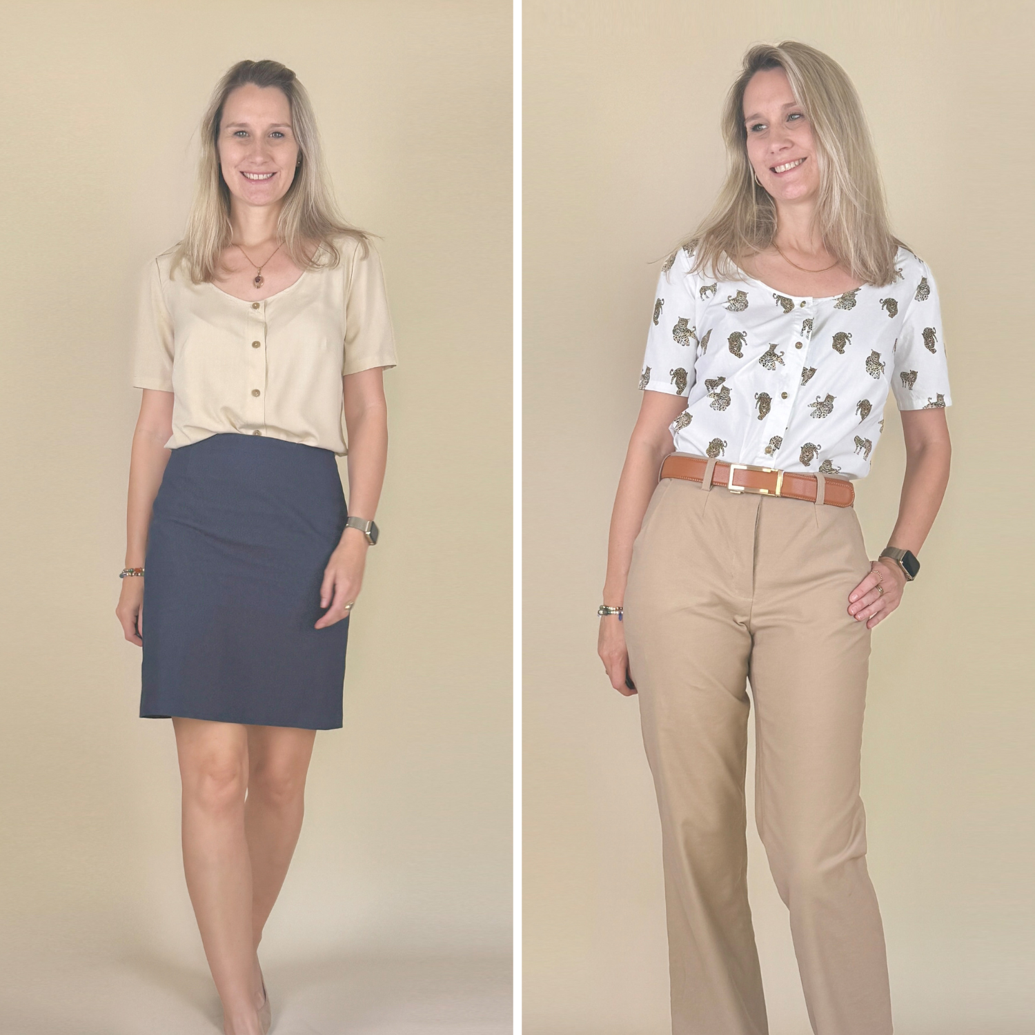 Bluse JULIA ist vielseitig kombinierbar – egal ob zur Jeans, Stoffhose, Lederhose oder einem Rock deiner Wahl. Je nach Stoff und Knopfwahl entsteht ein ganz unterschiedlicher Look: Leicht und sommerlich aus Viskose, edel mit Seidensatin oder cool im Jeansstil mit Chambray. Auch Muster, Farben und Materialien entscheiden mit, ob du JULIA in der Freizeit, im Büro oder abends zum Ausgehen trägst.