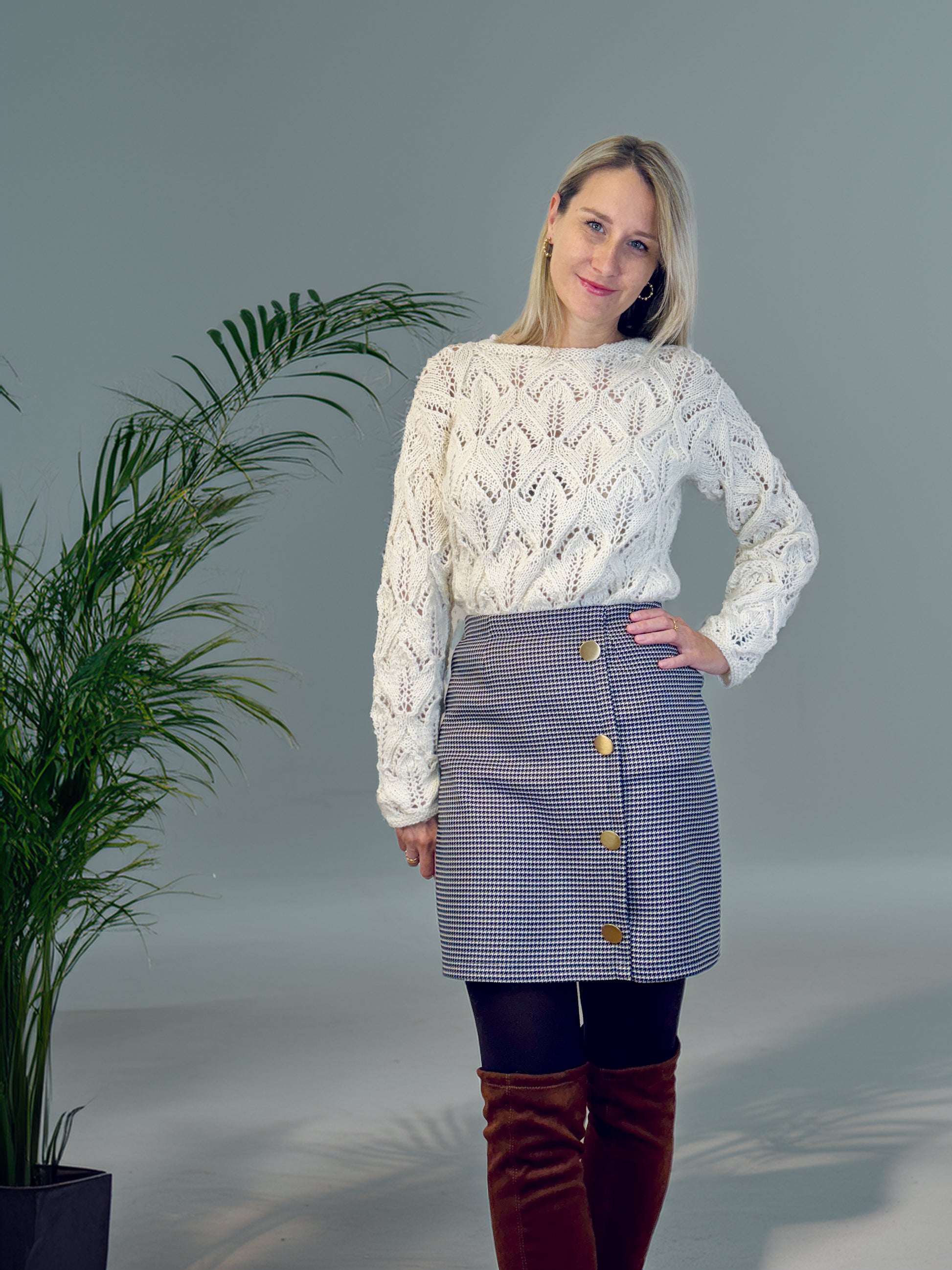 Das Schnittmuster LILLY ist für Webware ausgelegt. Am Besten eignen sich Hosen und Anzugstoffe, Bouclé, Tweed, Baumwollsatin, Cord, Denim oder andere Webwarestoffe für Röcke. Der Stoff kann auch einen kleinen Elasthan-Anteil haben.