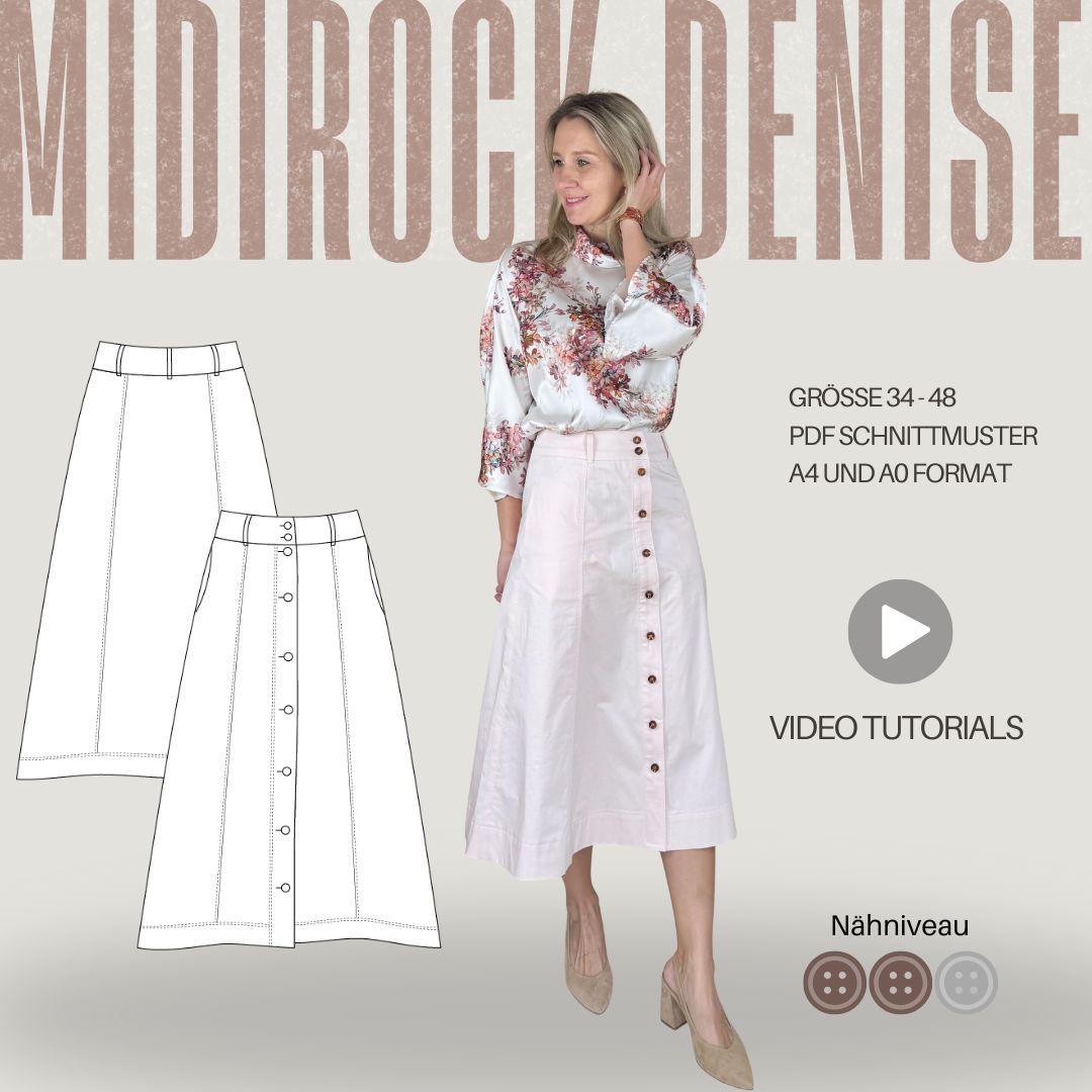 Schnittmuster DENISE - Midi-Rock in A-Linie mit Nahttaschen | Gr. 34-48 (PDF)